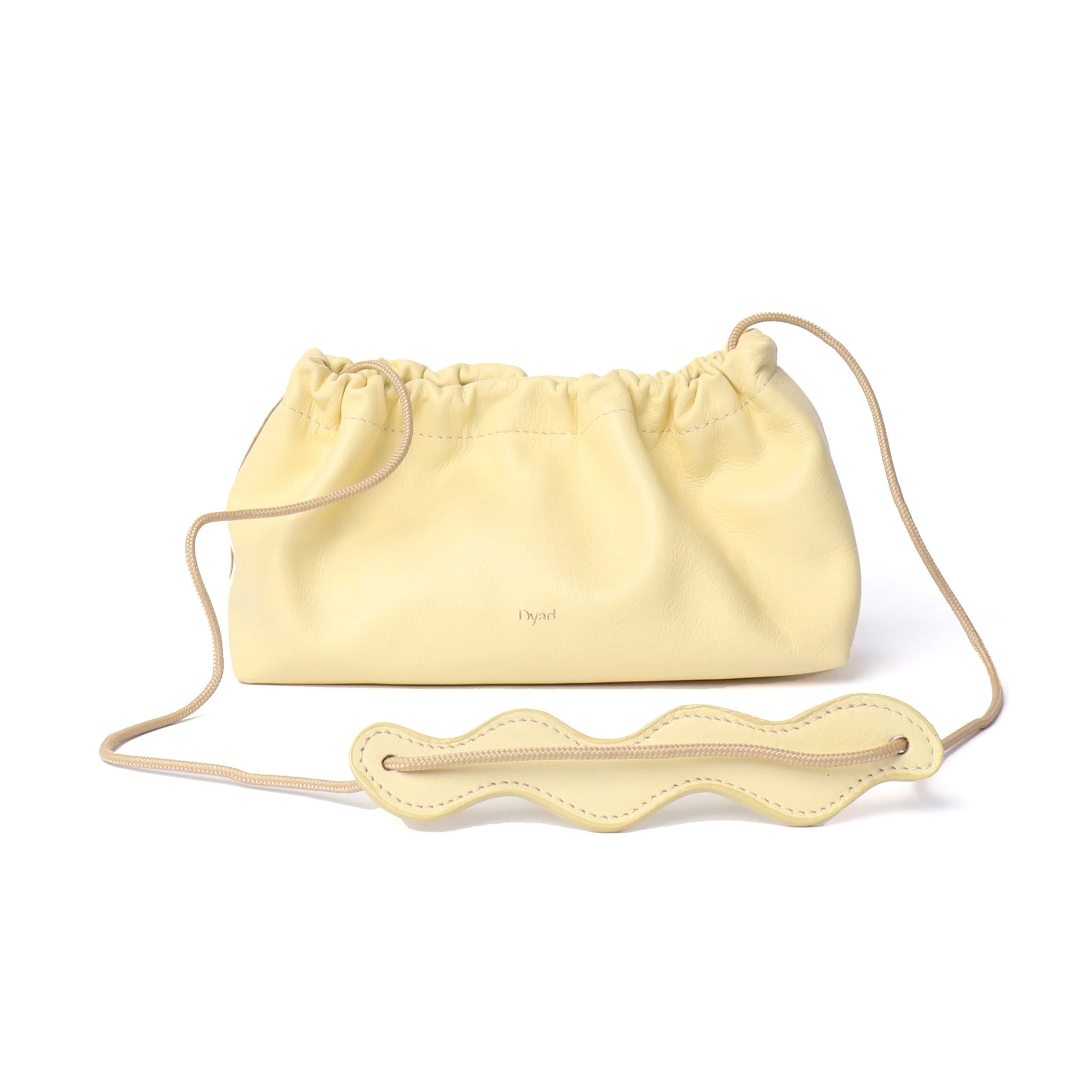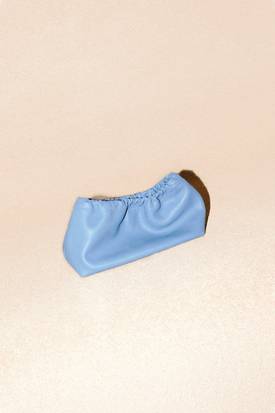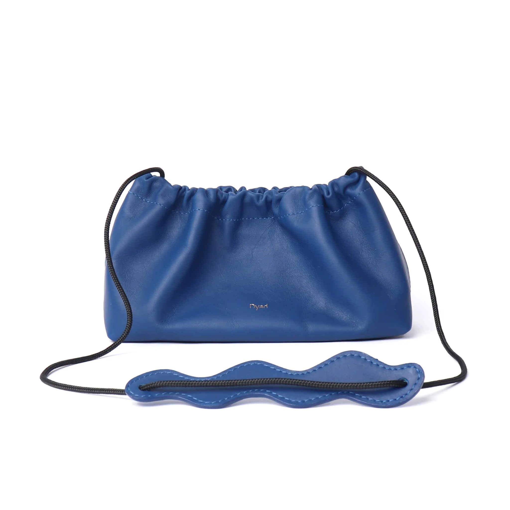 Small, yet spacious cow leather sling bag with ruche detail on the top and sailing rope strap.